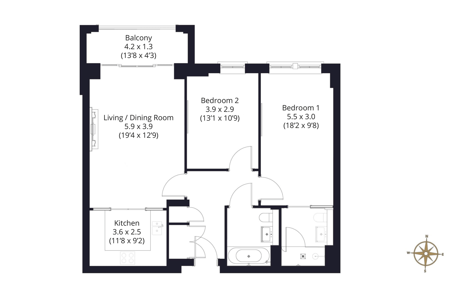 Apartment 9 is a first-floor apartment with two bedrooms and two bathroom which benefits from a large private balcony overlooking a quiet and elegant street in Hampton Wick.